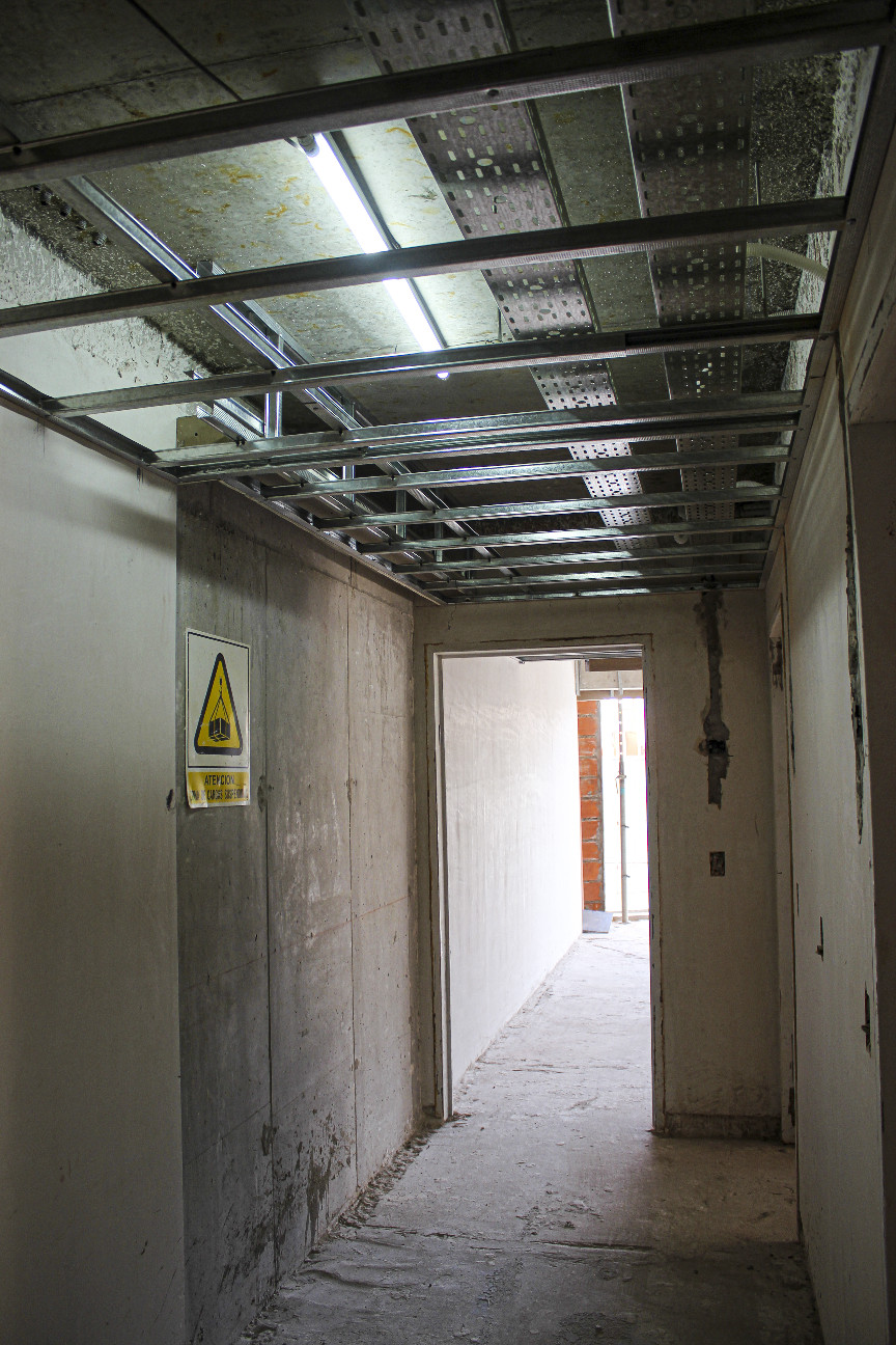 Se colocó revestimiento en la totalidad de los pasillos