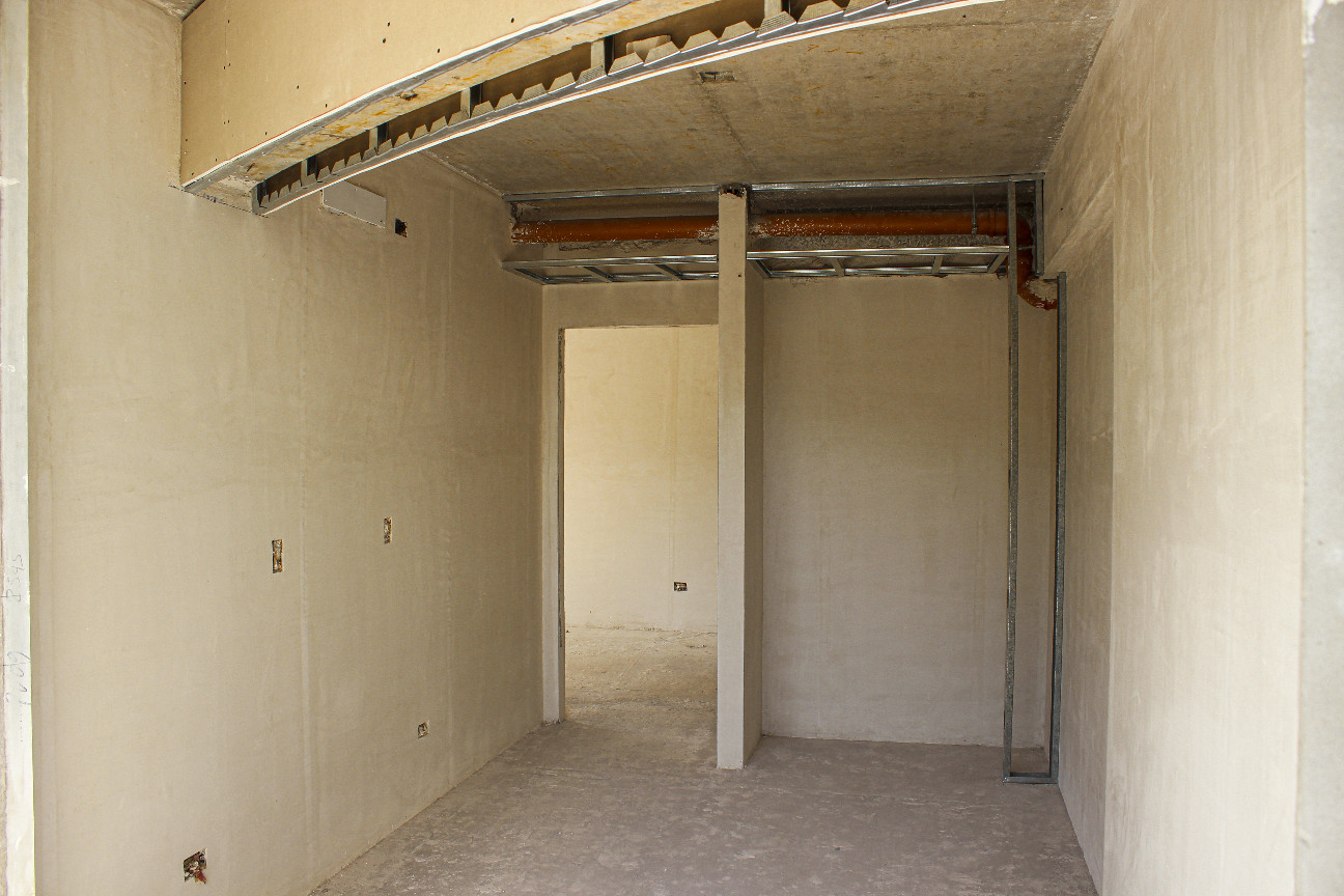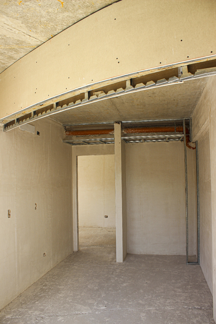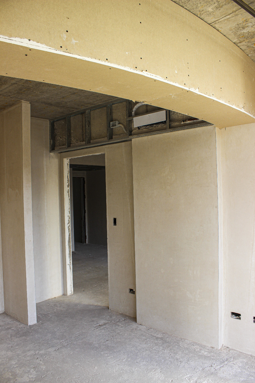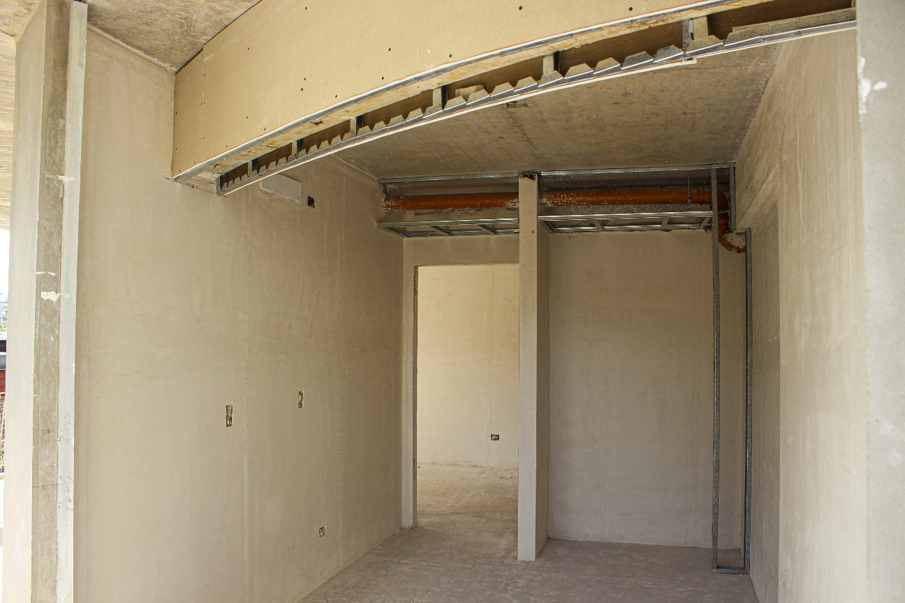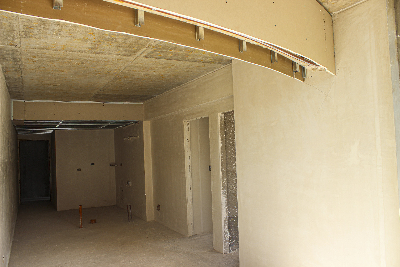 Se completaron los trabajos de yeso interior y colocación de premarcos en todos los departamentos desde el piso 2° al 5°, incluyendo cielorrasos en unidades y palieres.