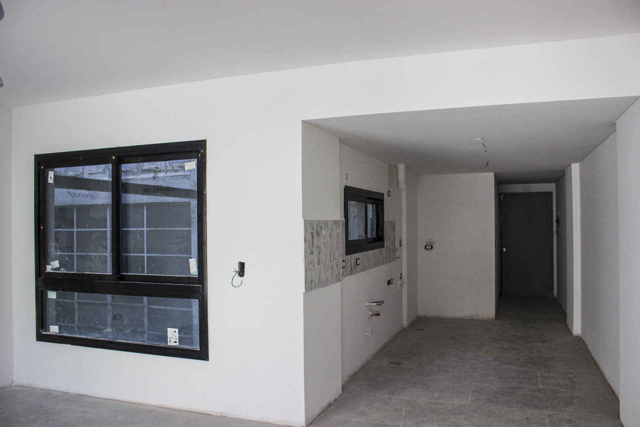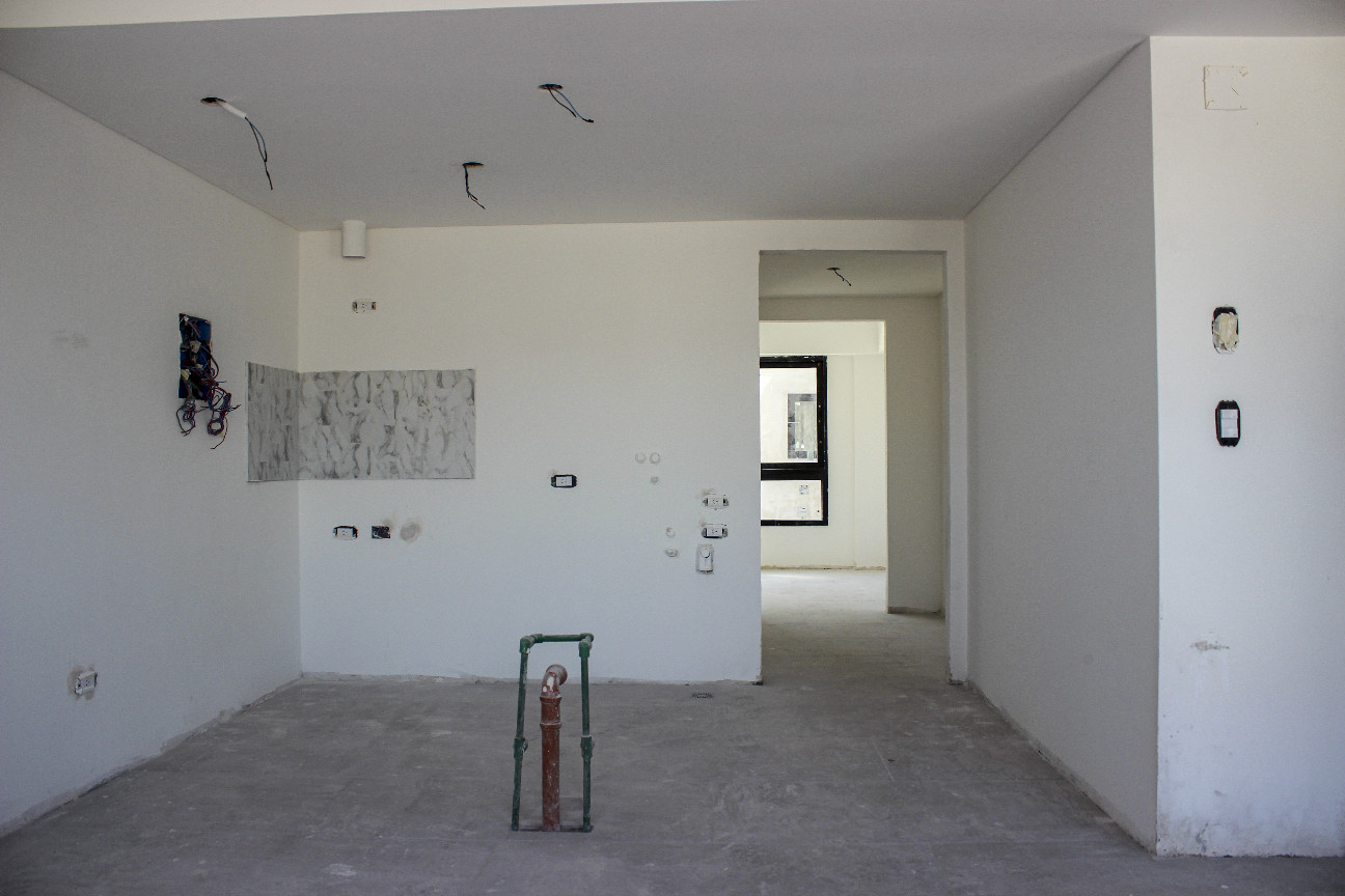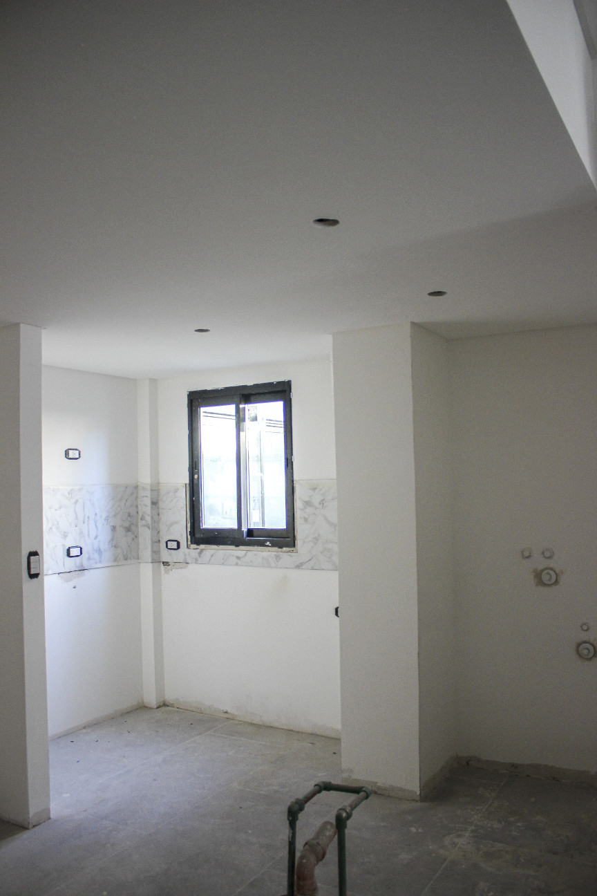Se finalizó el revoque, yeso, cielorrasos, colocación de revestimientos de cocinas y baños y revoque de medianeras.