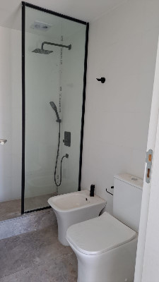 Barandas y Herrerías Se ejecutó la colocación de la perfilería metálica y los vidrios de barandas en todos los niveles. Se completaron los trabajos en escaleras. Se finalizaron las tareas de pintura y terminaciones en herrerías. Se encuentran instalado al 100% la estructura y vidrio que forman los divisores de balcón. Se finalizo la instalación de mamparas y espejos en todos los baños.
